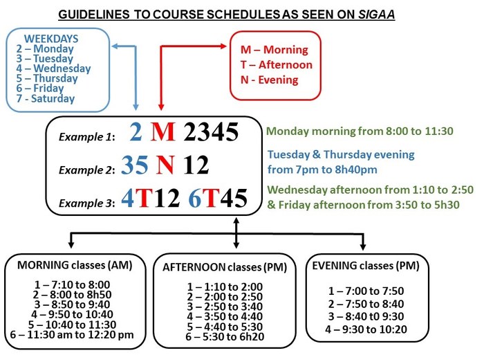 Below is an explanation of course schedules as they are displayed on Sigaa.