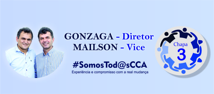 Chapa 3: Severino Gonzaga Neto, atual Vice Coordenador do Programa de Pós-Graduação em Zootecnia; Mailson Monteiro do Rêgo, atual Chefe do Departamento de Ciências Biológicas. Slogan: “#SomosTod@sCCA – Experiência e Compromisso com a real mudança”.