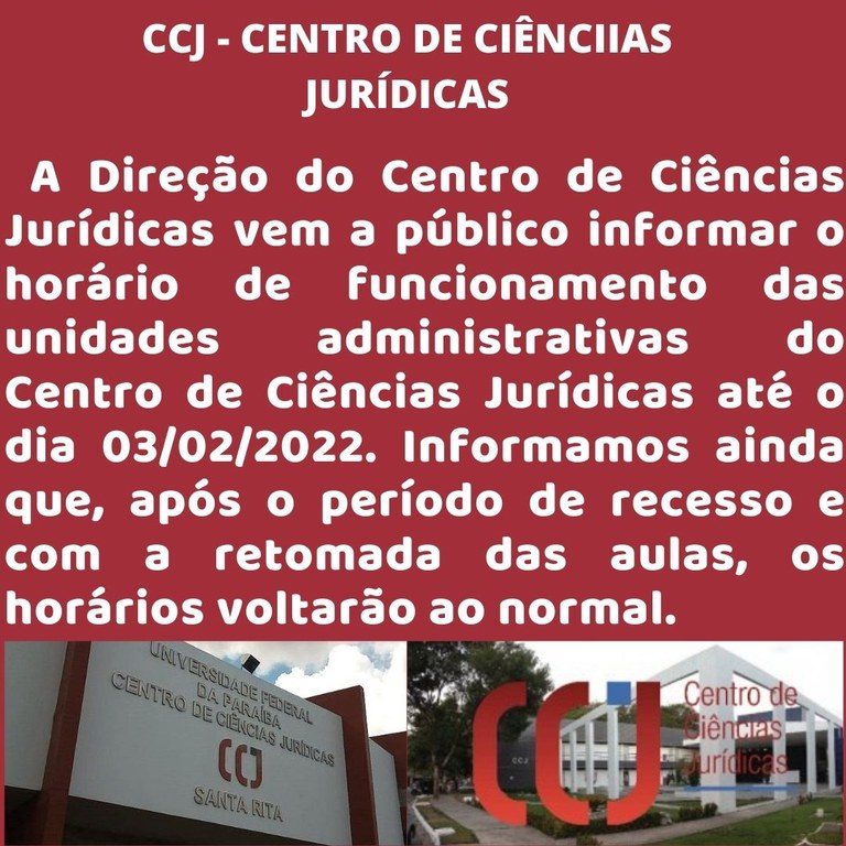 Horário de funcionamento das unidades administrativas do CCJ