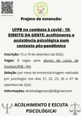 UFPB no combate à covid-19: DIREITO DA GENTE: acolhimento e assistência psicológica num contexto pós-pandêmico