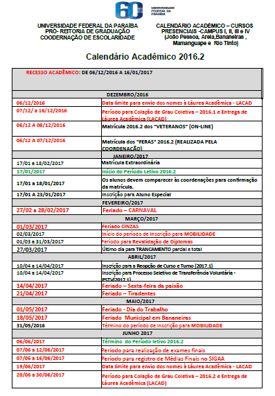 Calendário 2016.2