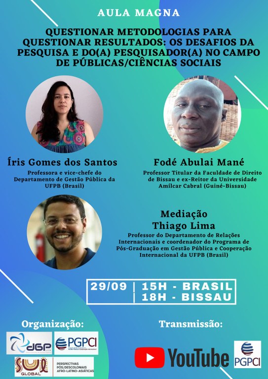 AULA MAGNA "QUESTIONAR METODOLOGIAS PARA QUESTIONAR RESULTADOS: Os Desafios da Pesquisa e do(a) Pesquisador(a) no Campo de Públicas/Ciências Sociais"