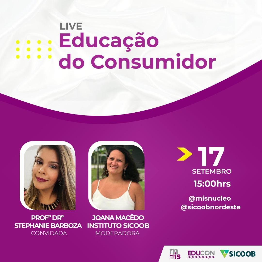 Prof.ª Stephanie Barboza participa de live sobre Educação do Consumidor, em conjunto com o Instituto SICOOB