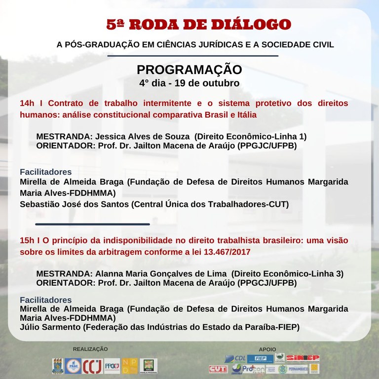 5ª Roda de Diálogo entre a Pós-Graduação em Ciências Jurídicas e a sociedade civil