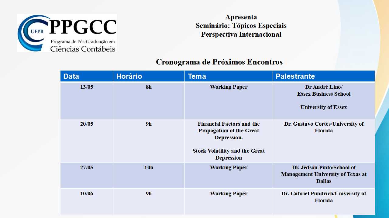 Seminário: Tópicos Especiais - Perspectiva Internacional - Encontros de Maio e Junho