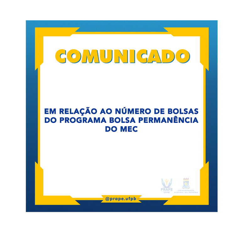 Comunicado em relação ao número de bolsas do Programa Bolsa Permanência do MEC