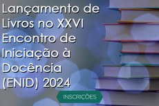 No XXVI Encontro de Iniciação à Docência (ENID), cujas atividades ocorrerão de 25 a 29 de novembro no Campus I; de 04 a 06 de dezembro no Campus II e III e de 02 a 03 de dezembro no Campus IV, serão abertas oportunidades para o lançamento de livros no evento. Os interessados em lançar algum livro que seja de sua autoria (individual ou conjunta), favor acessar o link https://forms.gle/TSkF113FSUruRivN6 e preencher os dados até dia 04/11/2024 para estudo da logística do lançamento.
