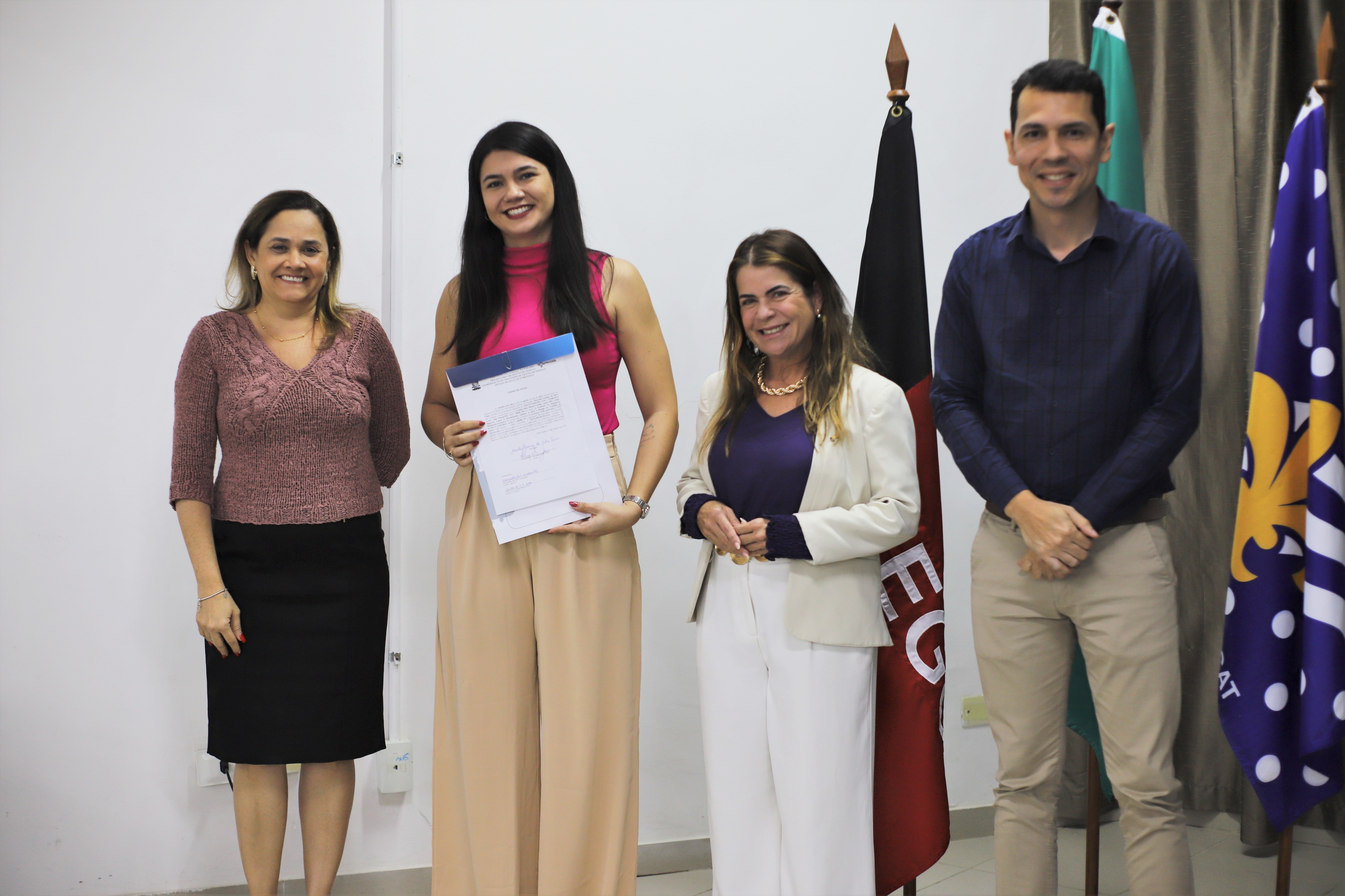 A solenidade de posse foi presidida pela Vice-Reitora Liana Filgueira e contou ainda com a presença da Pró-reitora de Gestão de Pessoas, Rita de Cássia e do Coordenador de Processos de Gestão de Pessoas, Fagner Oliveira.